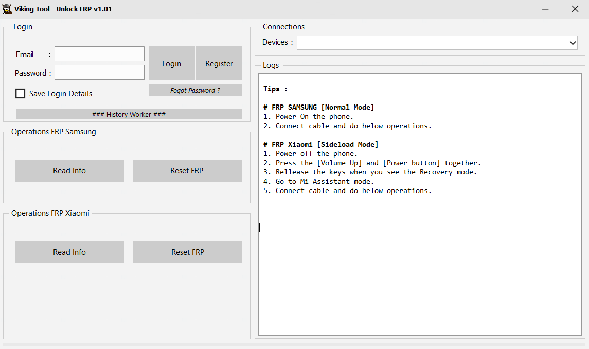 Viking FRP Service Tool designed for servicing Reset FRP (Google Factory Reset Protection) Erase FRP/Remove Google Lock Samsung & Xiaomi devices.
